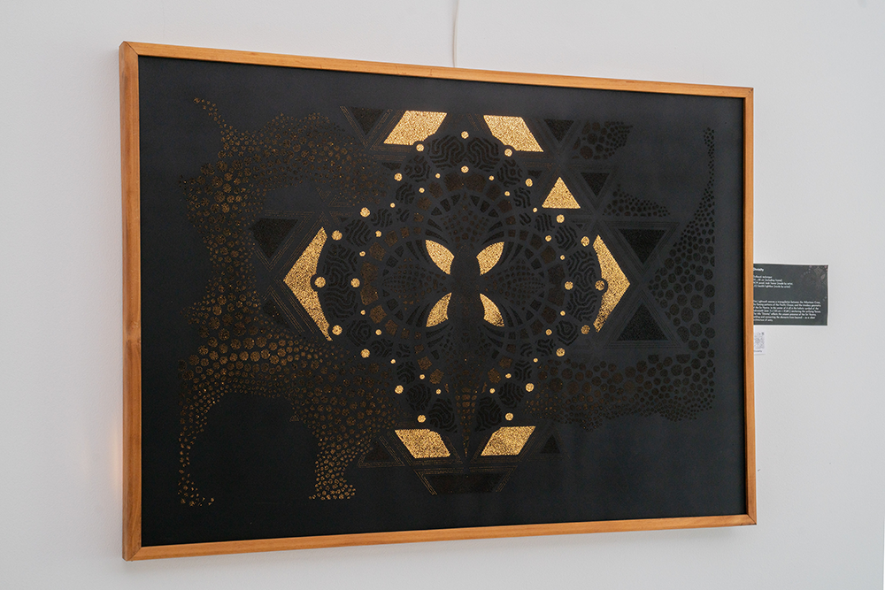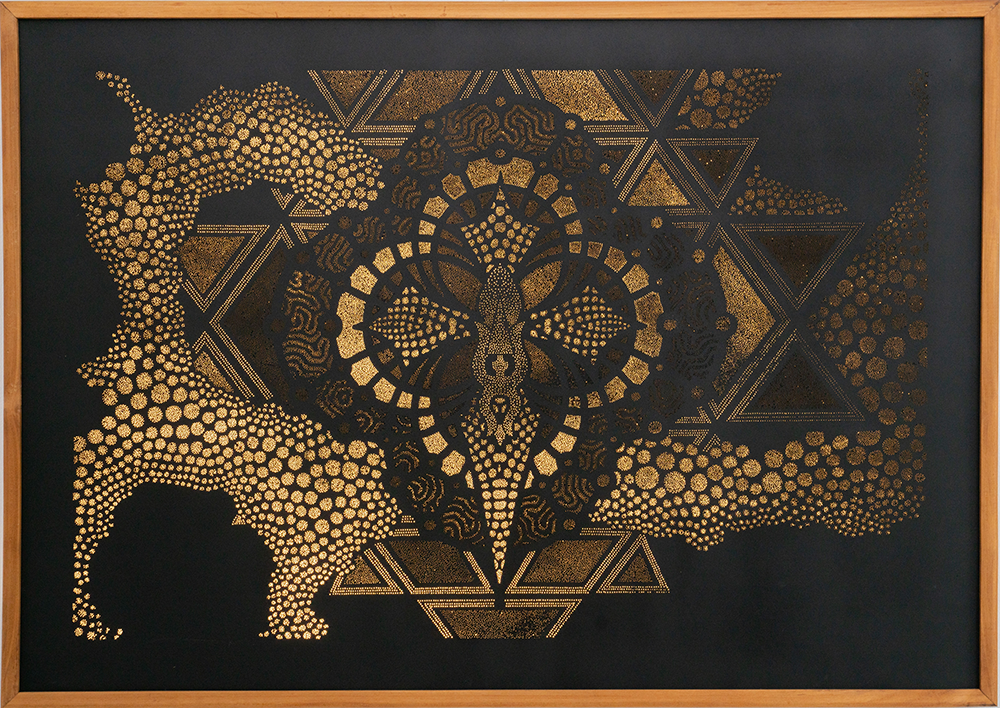 This Lightwork weaves a triangulation between the Atlantean Cross, the flowing patterns of the Pacific Ocean, and the timeless geometry of the Sri Yantra. In the center of it all is the energetic symbol of the Sakrosankt, anchoring the unifying forces. The title “Divinity” reflects the unseen presence of the Sri Yantra, holding and connecting the elements from beyond.